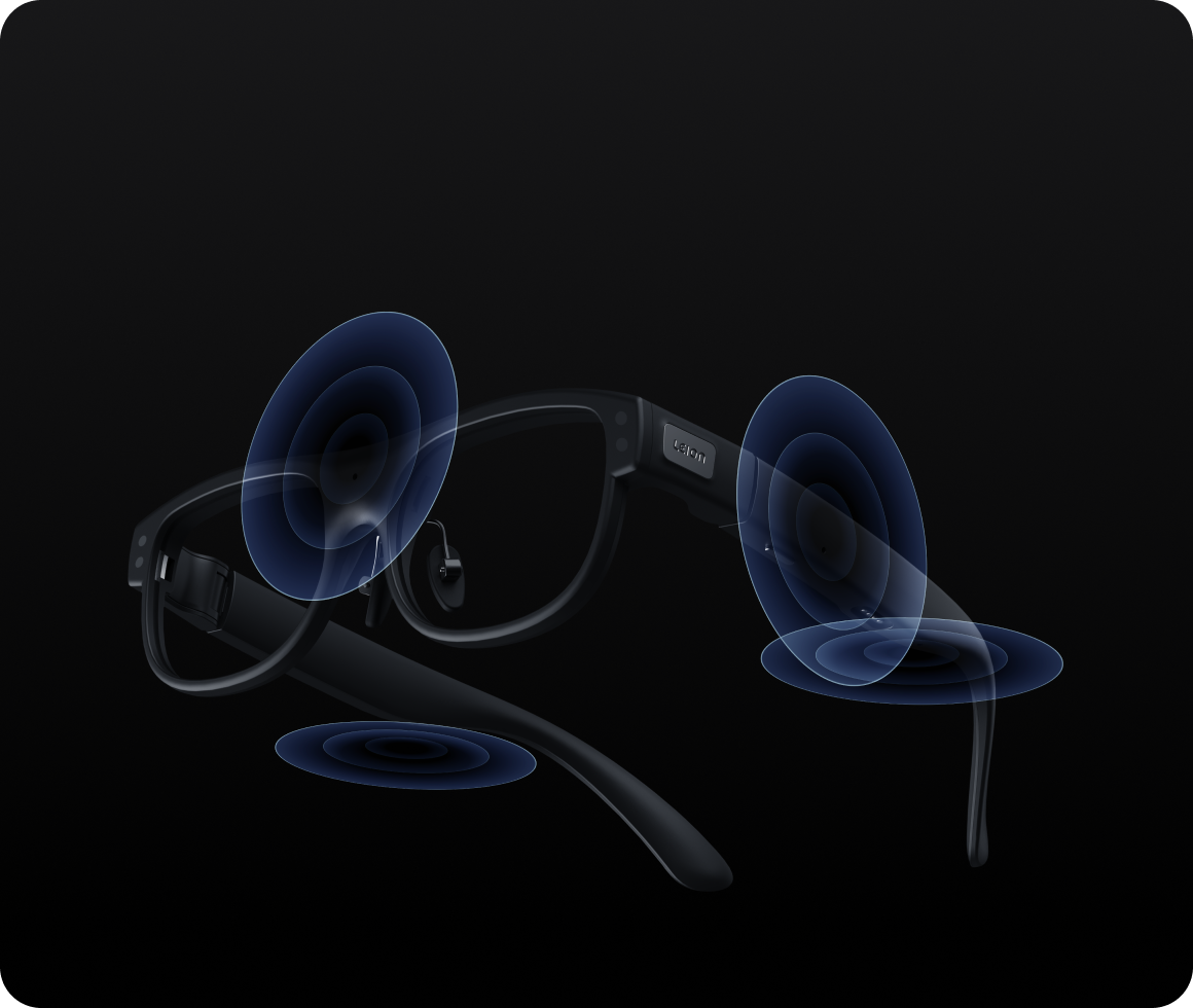 The glasses adopt a special display solution, featuring higher brightness, clearer visibility under outdoor conditions, enhanced safety, and relatively low power consumption, ensuring long-term use. We have also made special optimizations for front light leakage. Under normal circumstances, when communicating face-to-face at eye level, most of the light leakage is reduced. Only at special angles, such as when the other person is looking up, will text be displayed.